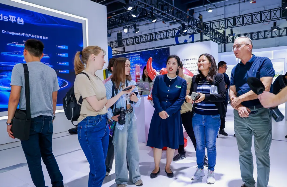本届展会在C1馆设未来市场主题展区,以“时代之问”为主题,展示“综合体、大商铺、多业态、数字化”特点打造的未来市场样板全球数贸中心,首发AI智周万物全新分身智能体Yapping。在该展位上,商城集团数字化负责人黄祥飞向客商现场展示了最新产品的功能以及提供的服务,致力于帮助客户建立更高效的运营体系。同时,Chinagoods平台新上线的AI电子名片、AI带货数字人也悉数亮相。